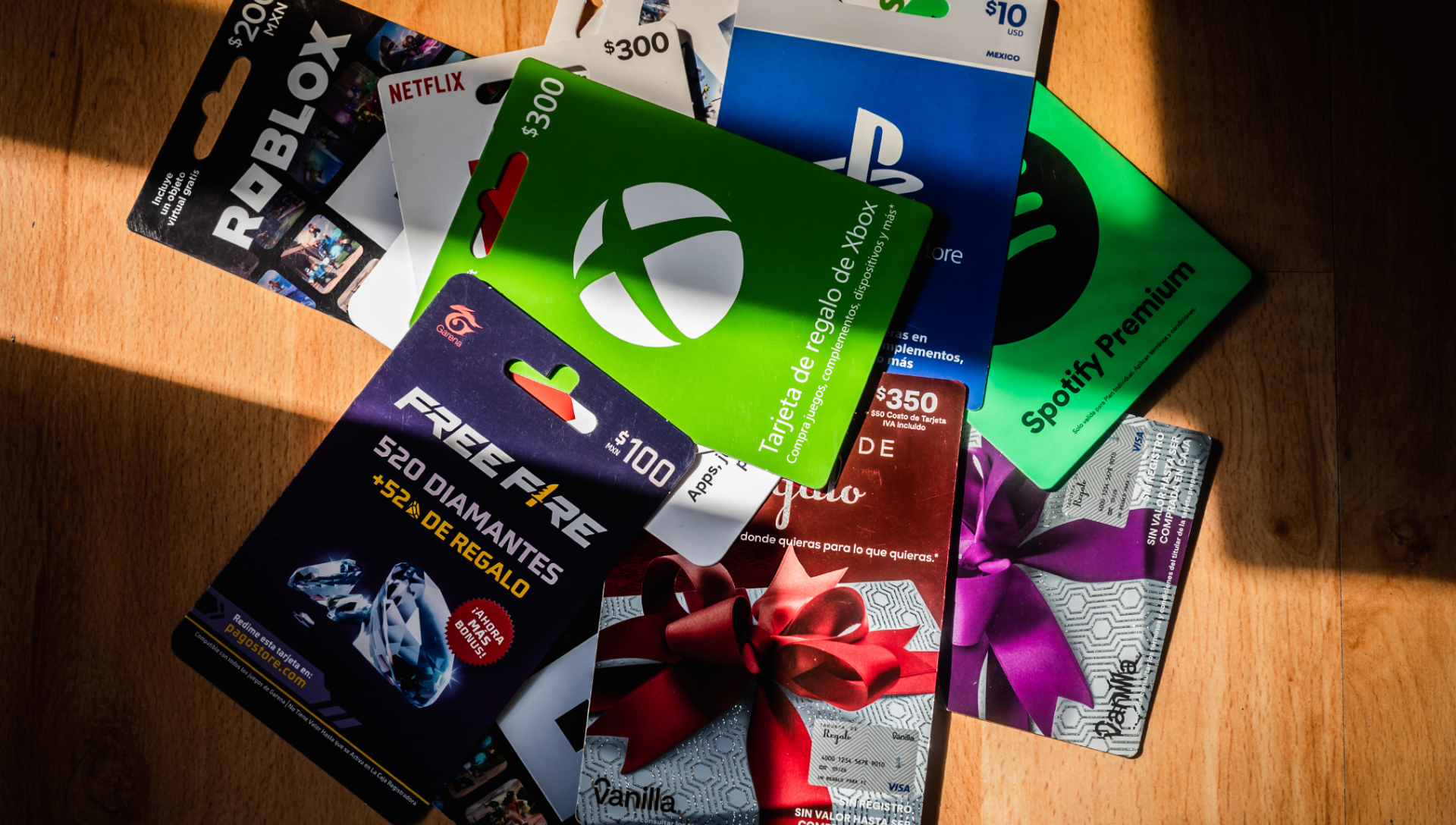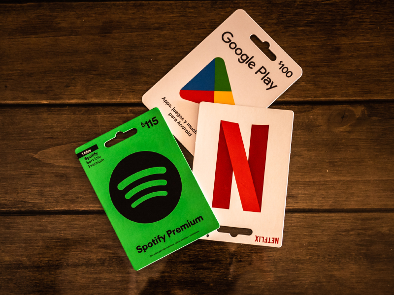 - Tarjetas de prepago.